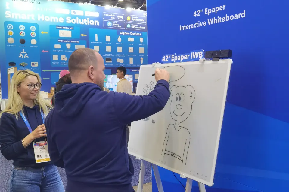 42-inch E-Paper Interactive Whiteboard: Combining our e-paper driver with high-precision touch technology, this board delivers a zero-lag, paper-like writing experience on a large e-paper screen—with no blue light or flicker. It addresses the core issues of eye strain, glare, and heat from traditional LCD meeting panels, redefining the future “healthy collaboration space” for classrooms and conference rooms.